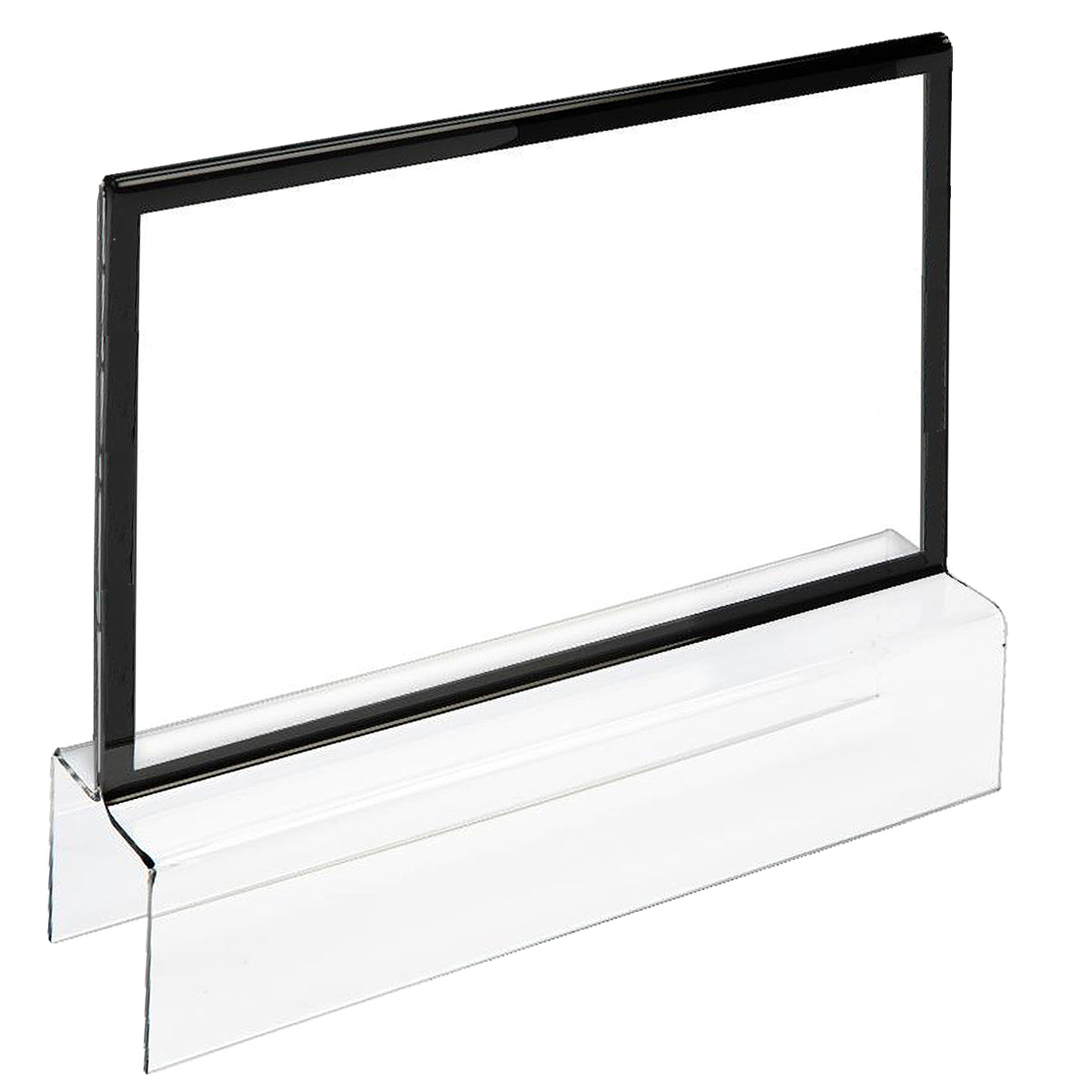 Style PNHT2SS - Tiered Acrylic Top Mount Cubicle Name Plate Holder that takes double-sided displays to new heights! Fits snugly on top of cubicle partition walls, showing two inserts from either side of the added tier. There is no need to drill or use tools to mount the top-view cubicle nameplate holder, thus saving time. A colored border on a top-view cubicle nameplate holder enhances the professional look of an office and can aid in organizing cubicles by department or team. Available with a silver or black border.