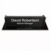 Add a professional finishing touch to any workspace with this modern, durable black acrylic name plate holder.